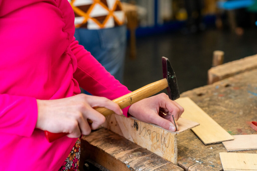 In het technieklokaal wordt door alle leerlingen gewerkt. Een plan maken, meten, zagen en timmeren, volgens een vaste opdracht, maar soms ook naar eigen idee.
