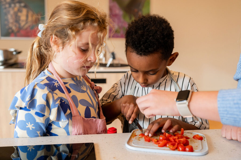 In het kooklokaal wordt door alle leerlingen van De Vlindertuin gekookt en gebakken. Eerst recepten zoeken, zorgen dat alle ingrediënten er zijn en dan aan de slag met afwegen, snijden en roeren. En daarna… lekker samen opeten!